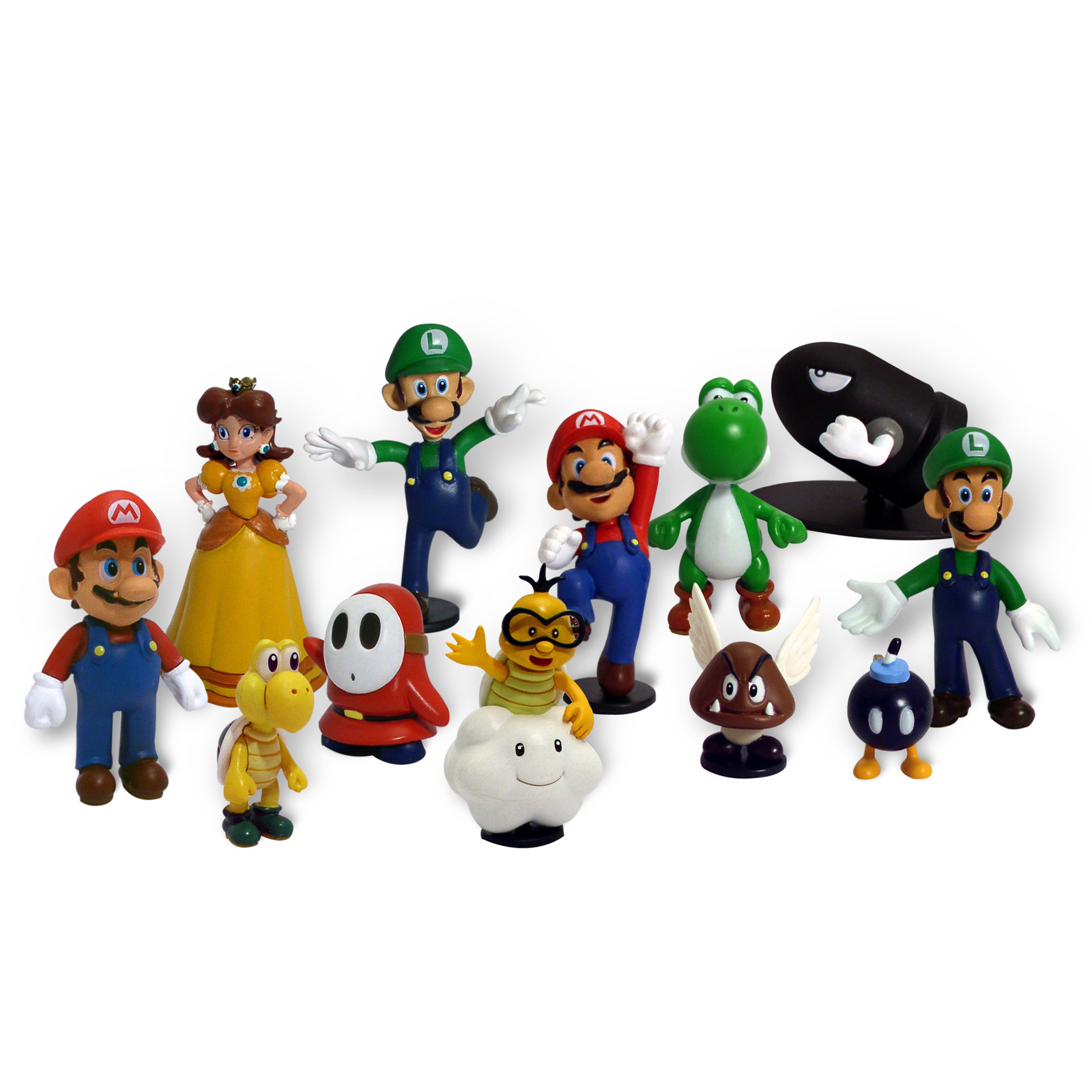 GOLDIE Super Mario Brothers 2-Inch Figure Complete Series 1 and 2 Set 12 Pack Multi-color This Super Mario Figure Set 12 pack consists of each classic character from Series 1 and 2 ranging from 1 inch to 3 inches tall. Characters include two different Mario figures, two different Luigi figures, Lakitu, Bullet Bill, Paragoomba, Shy Guy, Yoshi, Daisy, Bob-omb, and Koopa Troopa. Each character is detailed in their classic attire. WARNING: CHOKING HAZARD - Small parts. Not for children under 3 years. Some poses require additional support. For boy or girl ages 7 years and up..